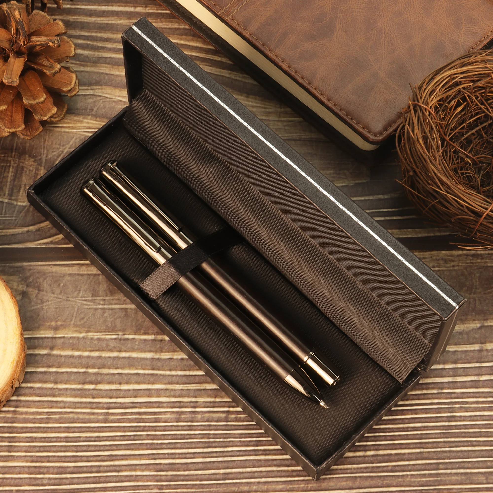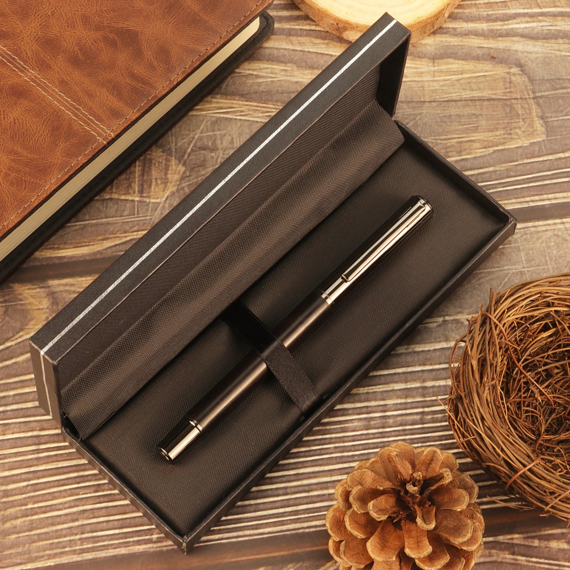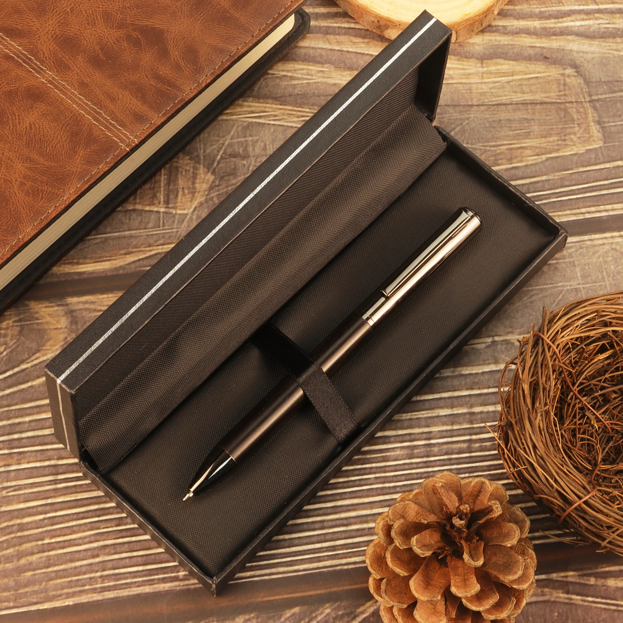 1-Piece Elegant Wooden Pen - the color of Brown or Ebony - Exquisite Sliver wire Box - Ideal Gift, Suitable for business