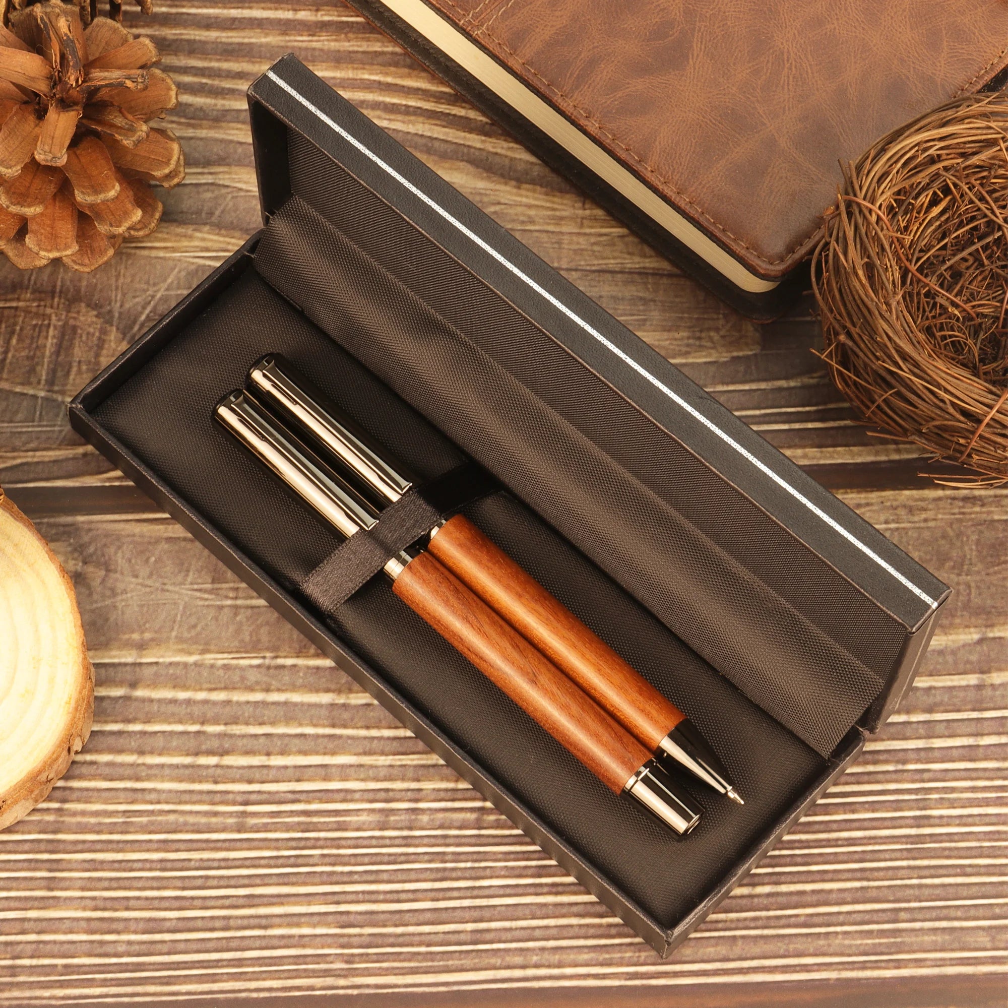 4.For a pen that's both practical and stylish, this wood grain pen set is hard to beat. It's perfect for anyone who appreciates fine writing instruments and a touch of classic elegance.