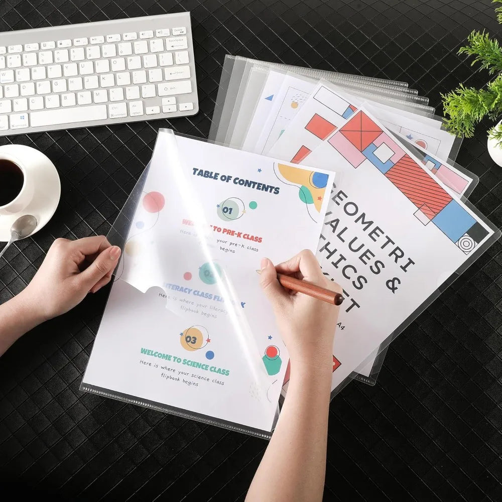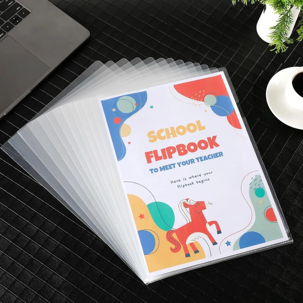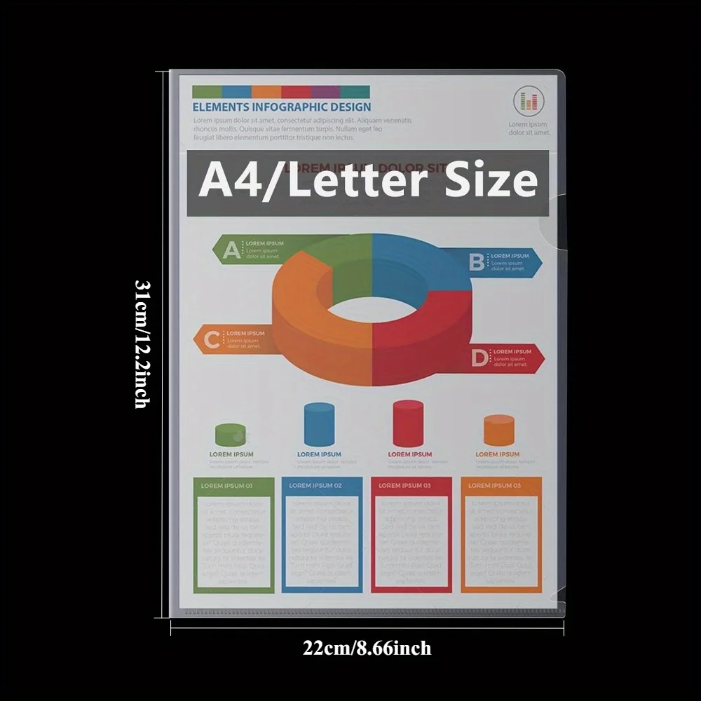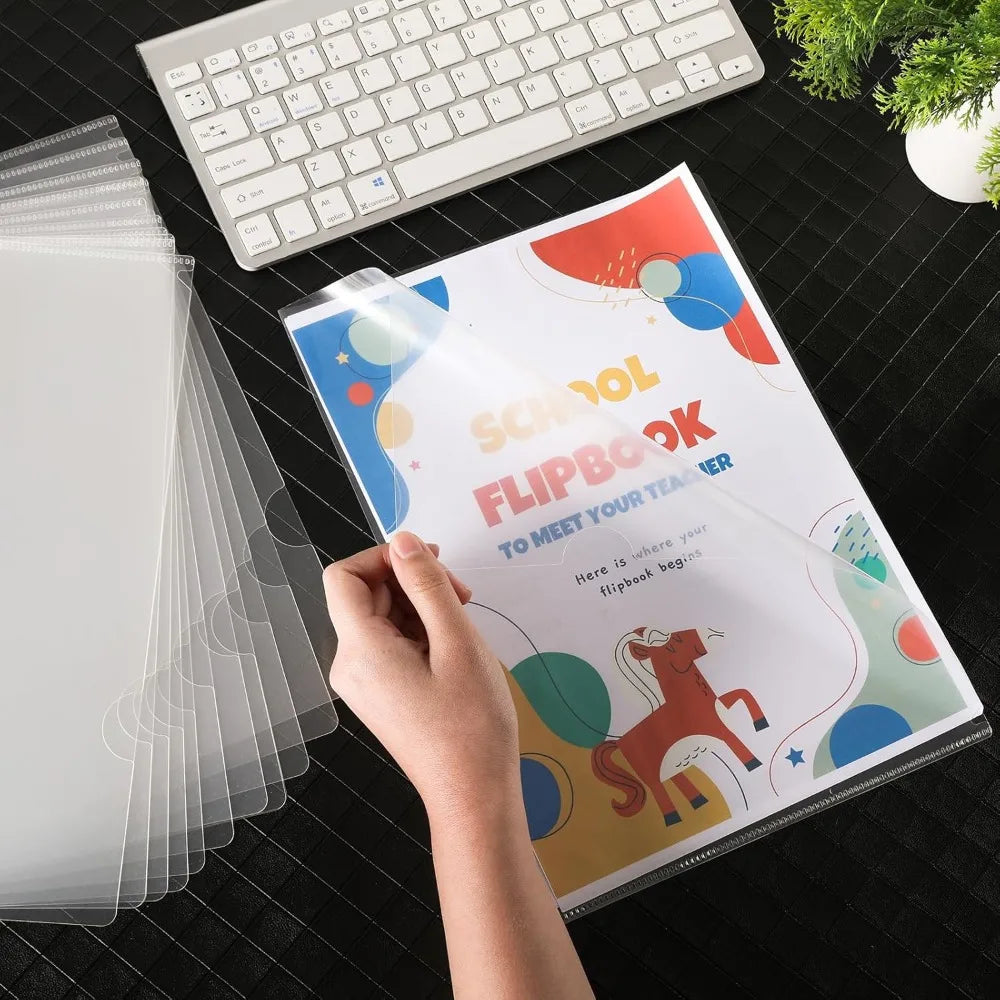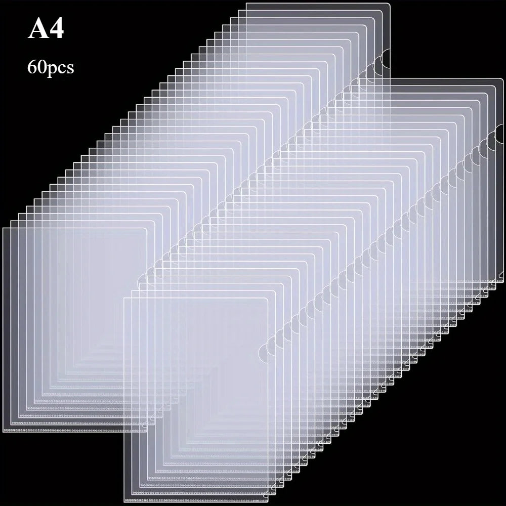 10pcs/60pcs L-Type Clear Plastic File Folders - A4/Letter Size Transparent Plastic Sleeves Ideal for School and Office Supplies