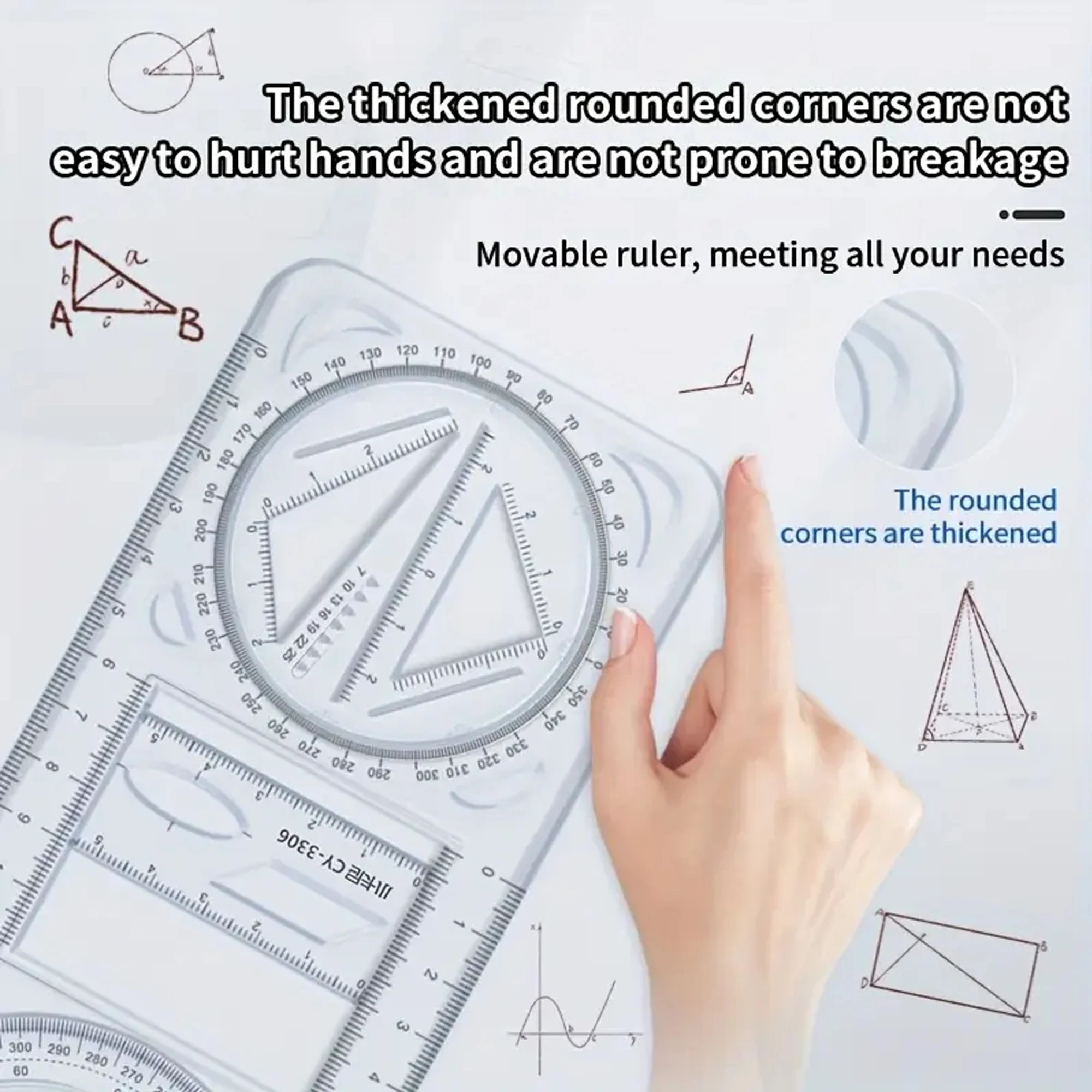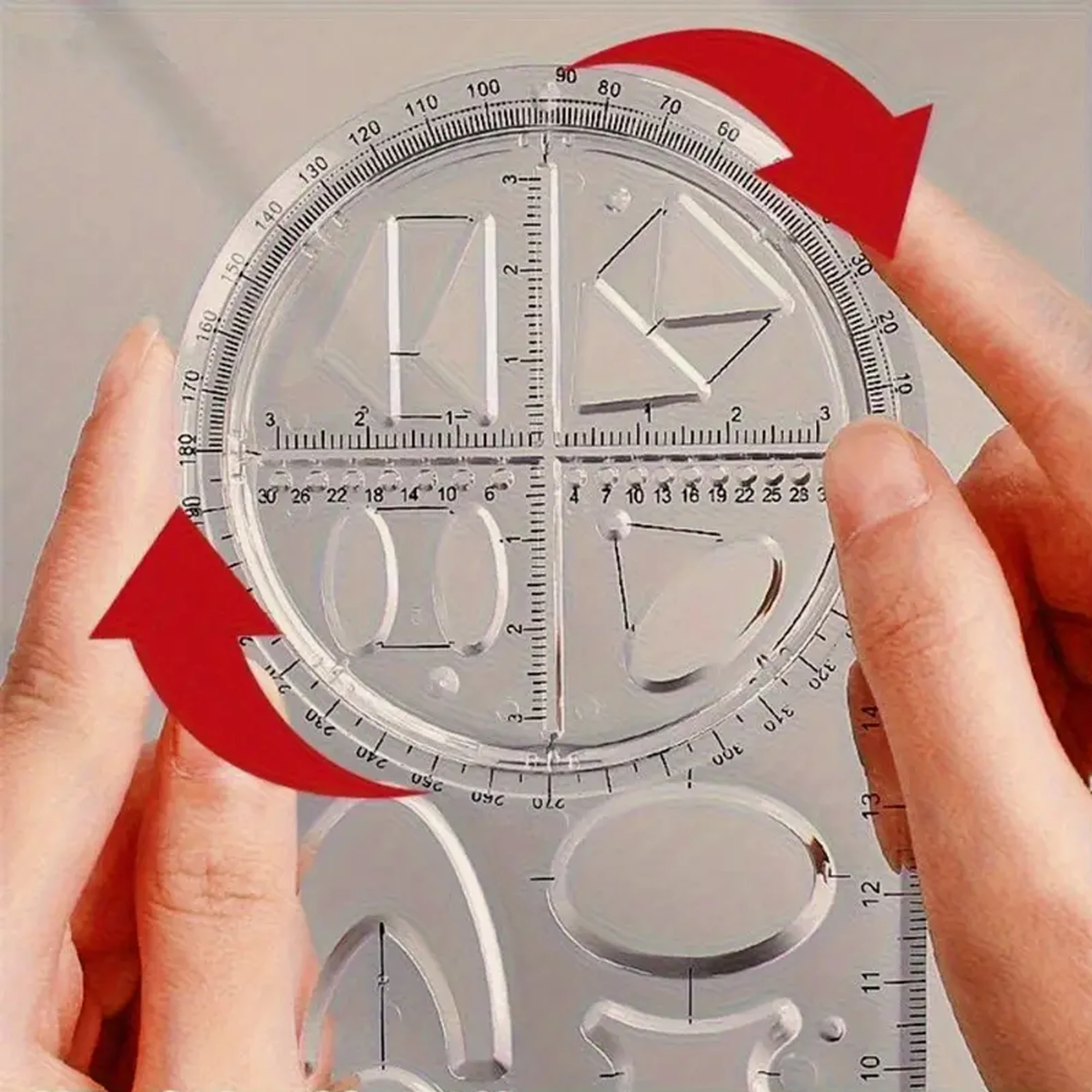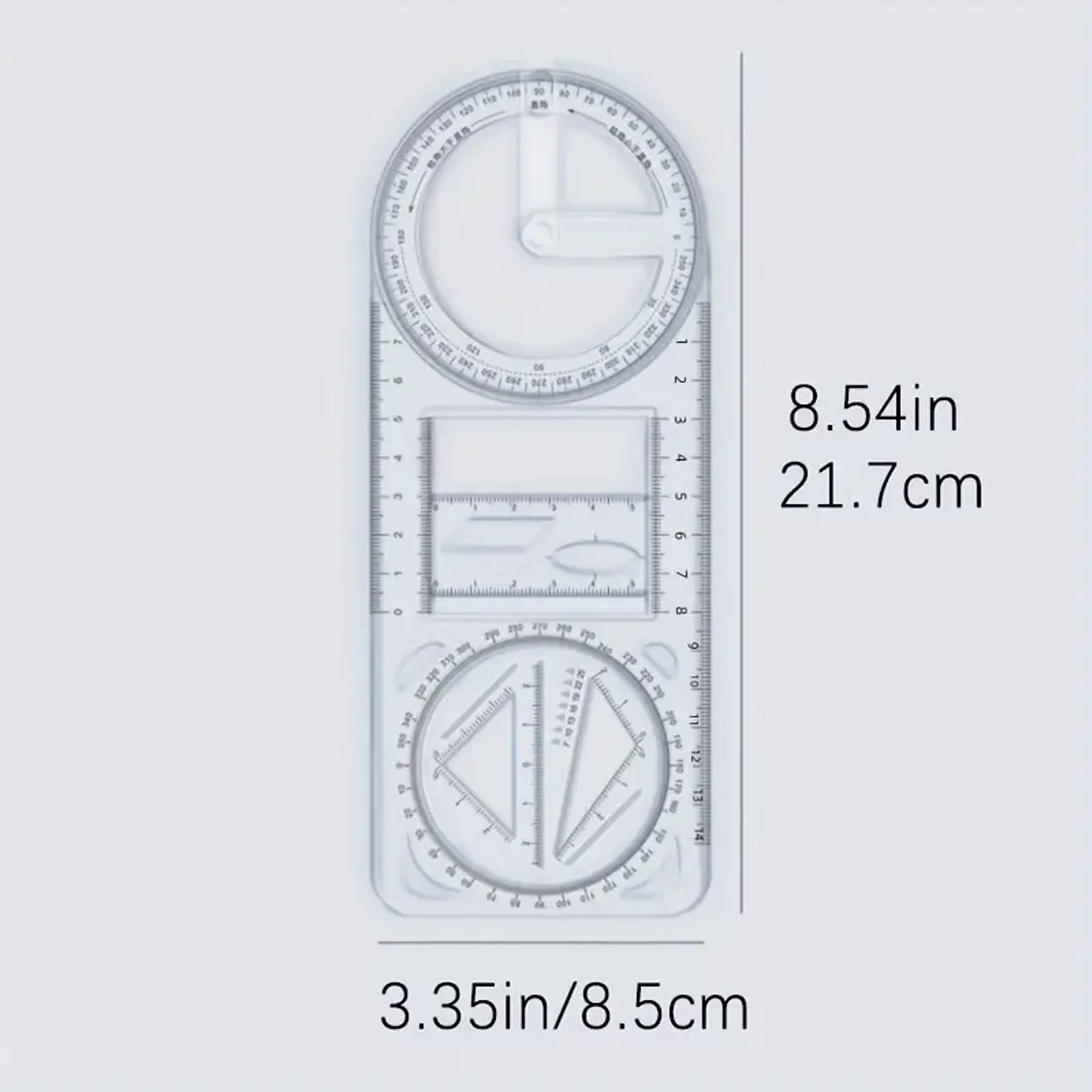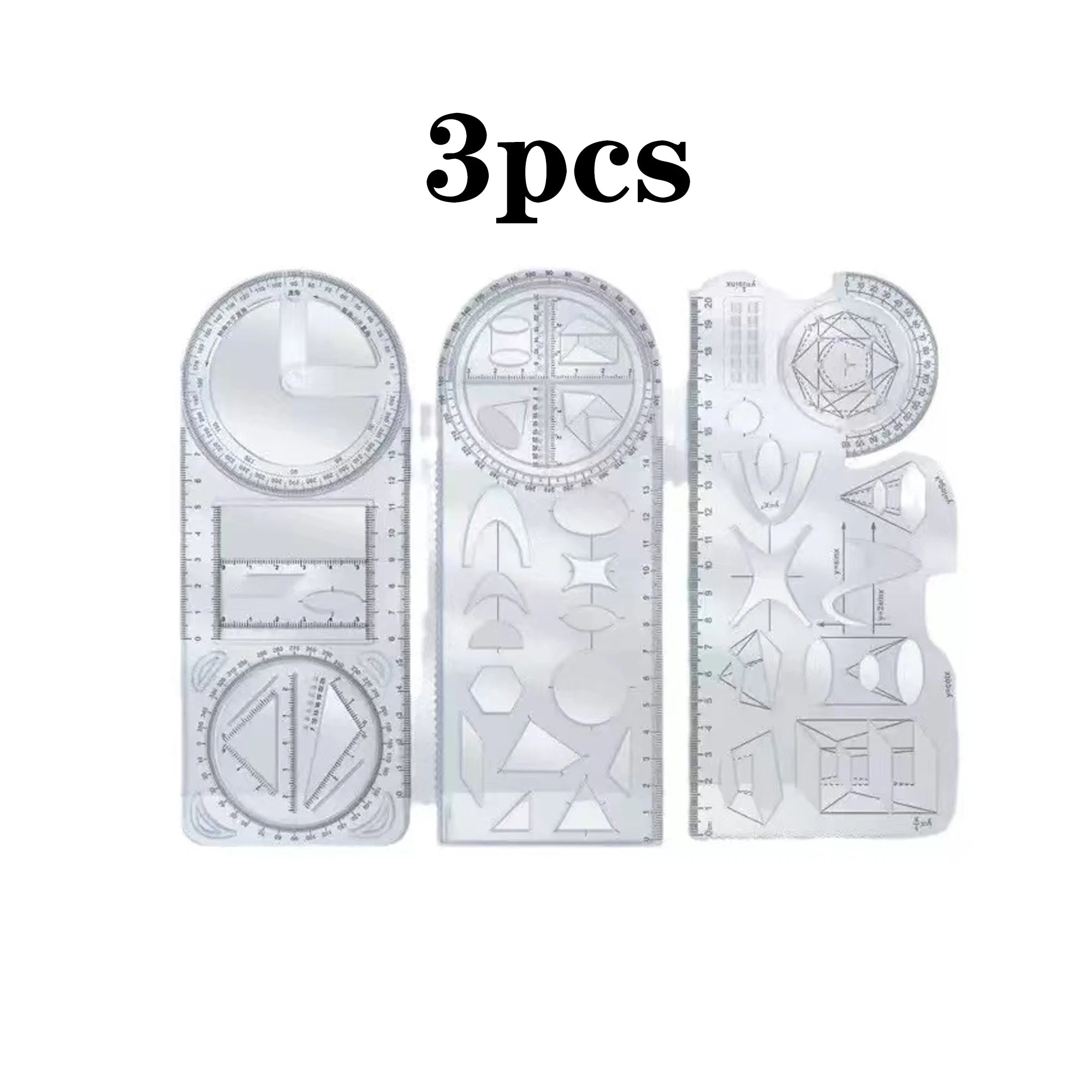A Set of 3-Piece Multi-Functional Geometric Painting Ruler, Various Graphic Painting Rotating Ruler, Plastic Material Drawing Tool, Flat Graphic Painting Square Ruler, Student Office Special Ruler