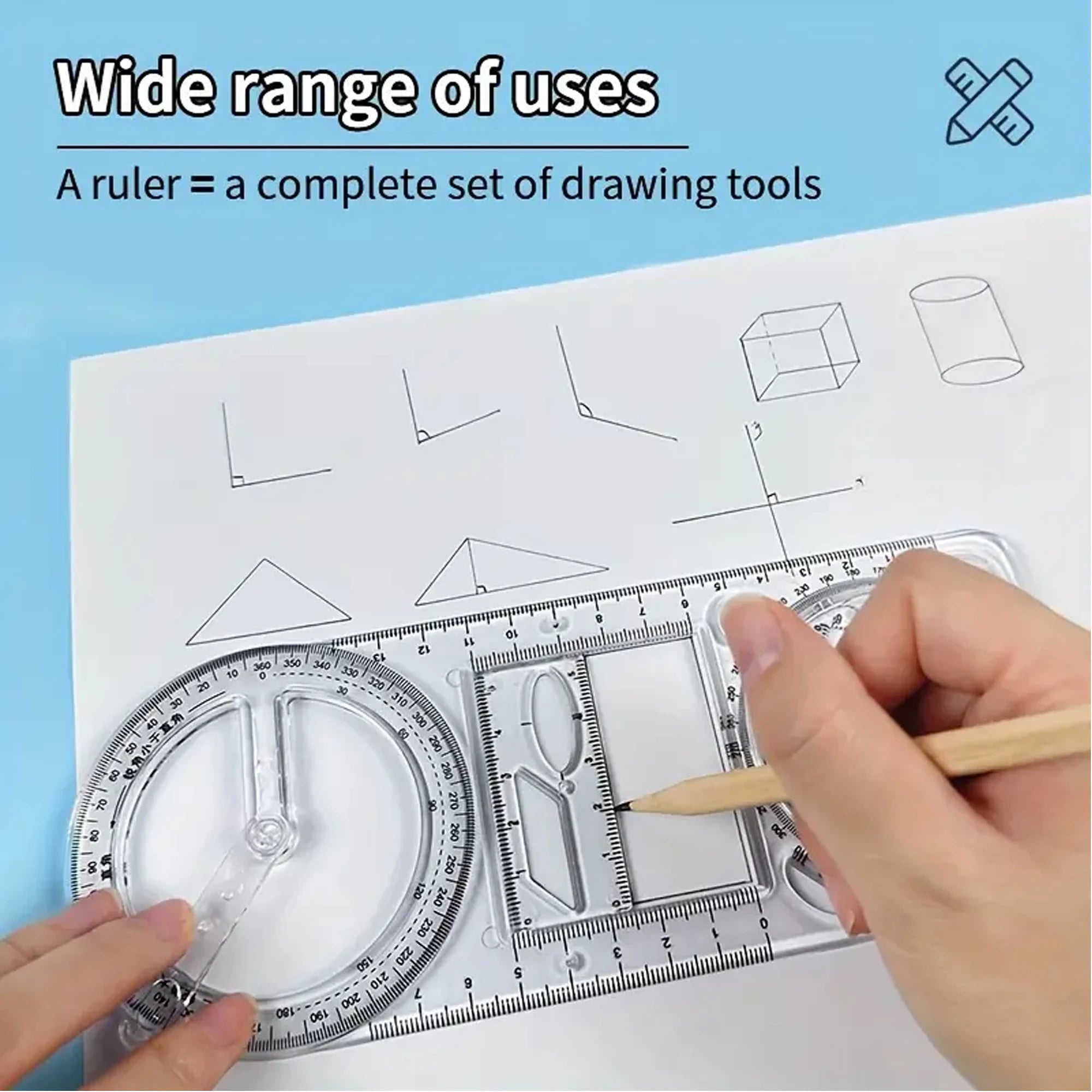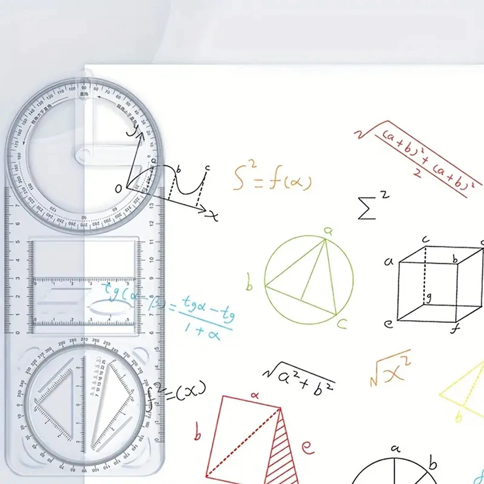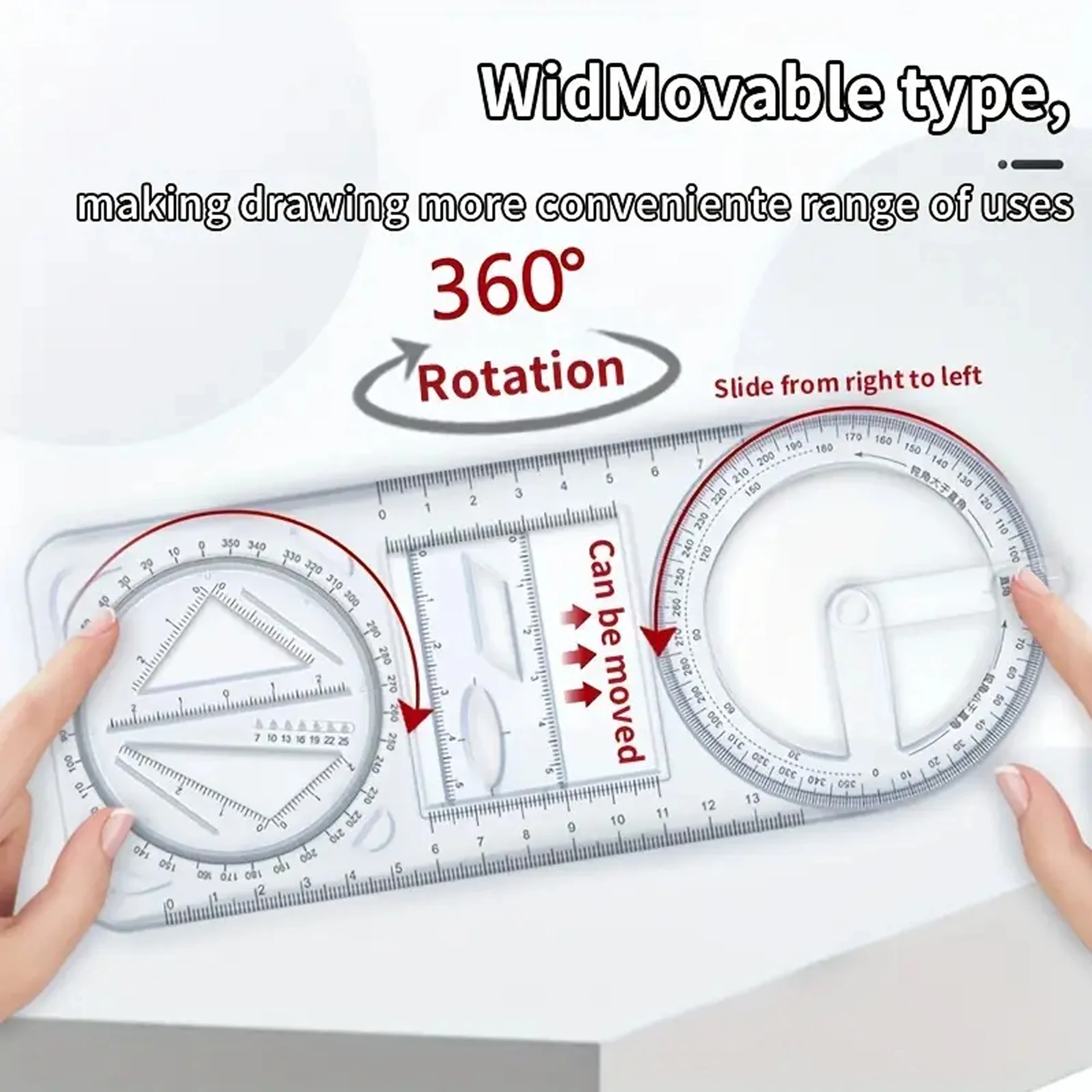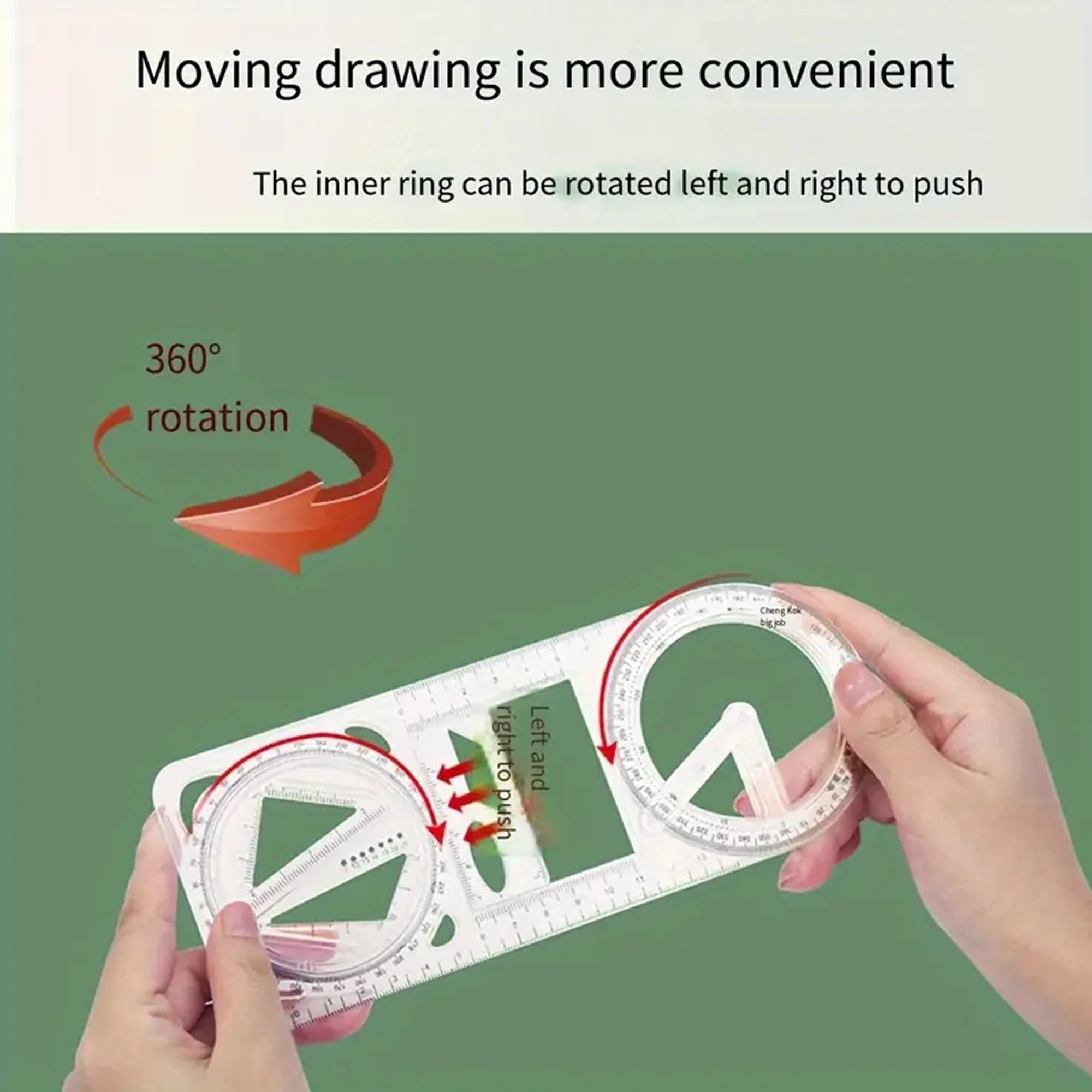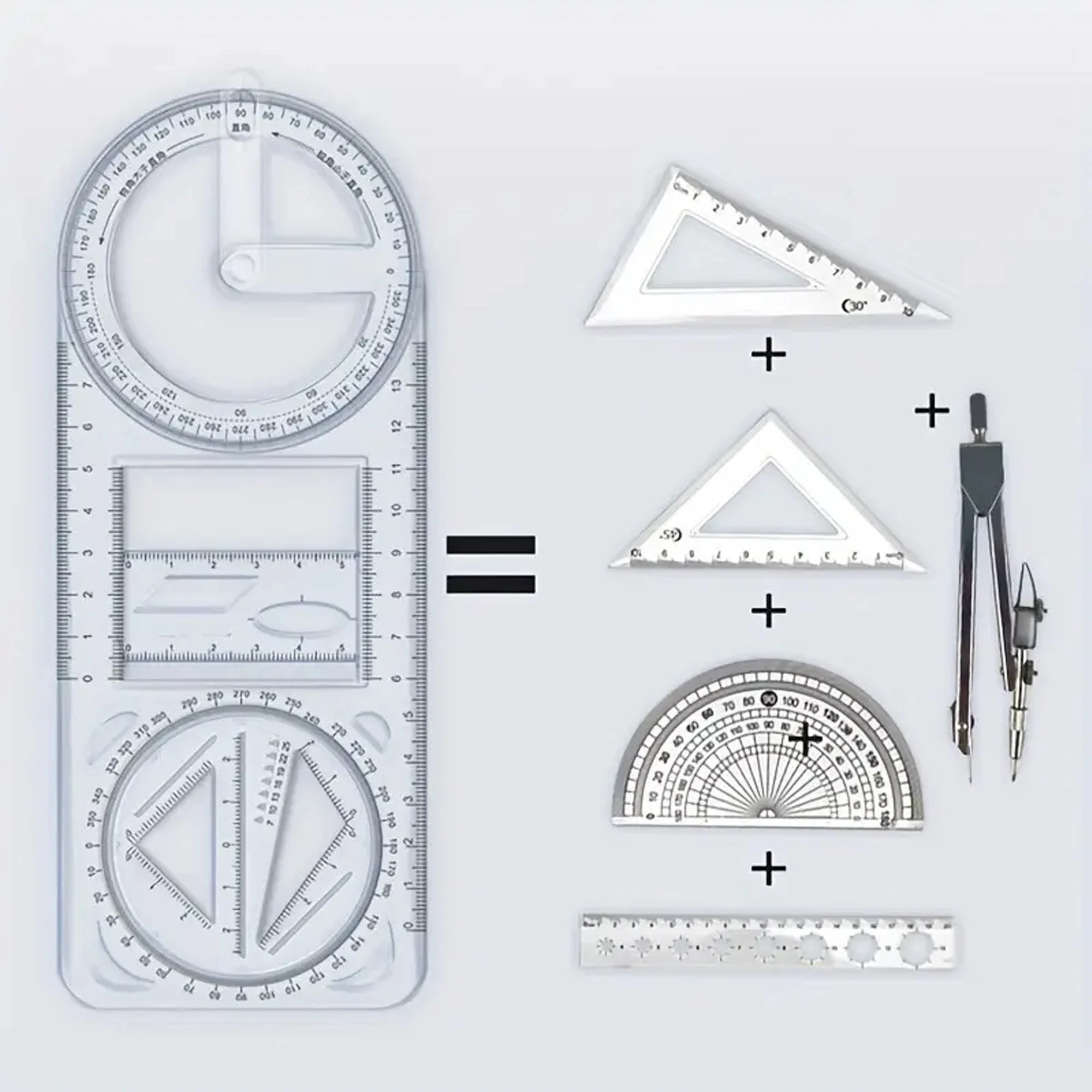 A Set of 3-Piece Multi-Functional Geometric Painting Ruler, Various Graphic Painting Rotating Ruler, Plastic Material Drawing Tool, Flat Graphic Painting Square Ruler, Student Office Special Ruler