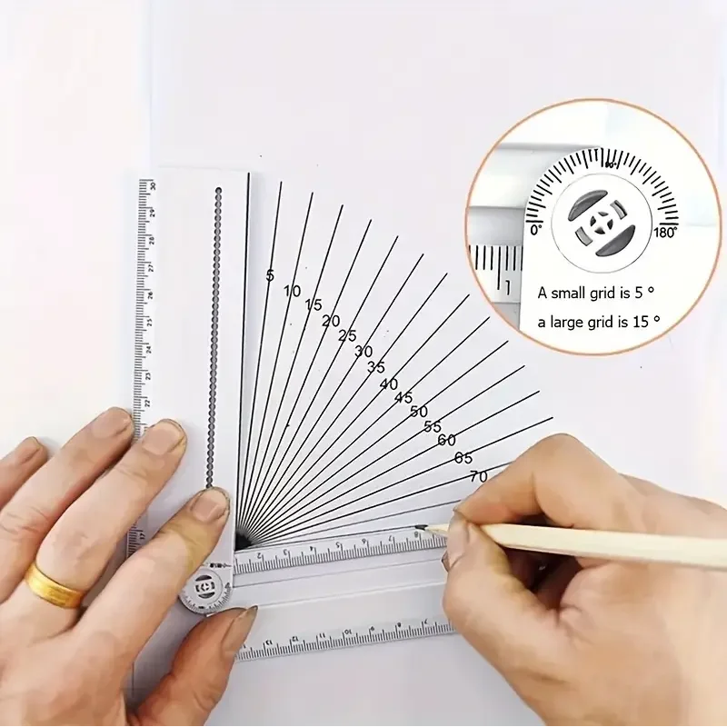 Multi functional folding geometric drawing ruler, used for drawing geometric templates with angle measurement in school offices